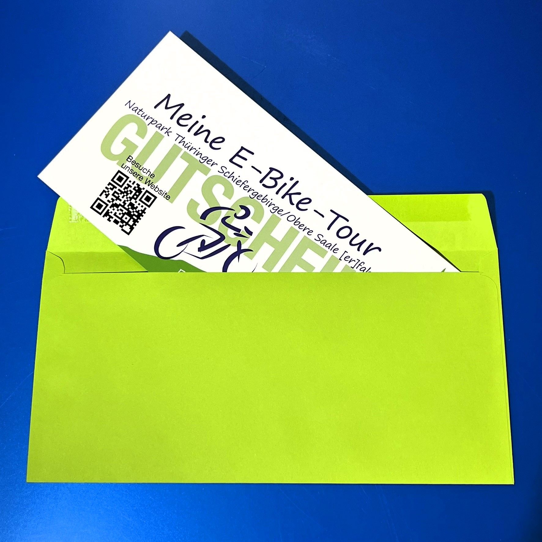 Die Gutschein-Karte von Meine E-Bike Tour ist das ideale Präsent, wenn du in Familie, unter Freunden oder Kollegen Bike- / E-Bike-Fans hast.
